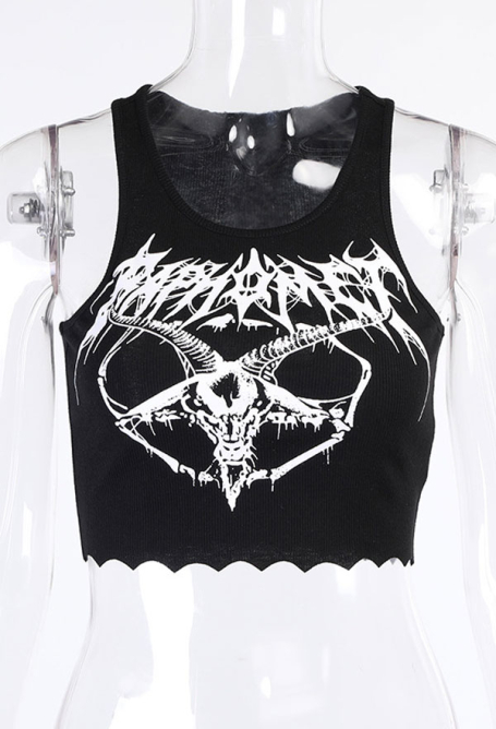 Goat Head Characters Printed Pattern Navel Vest Woman Gothic Cool Dark Style Top Outfit For Sale